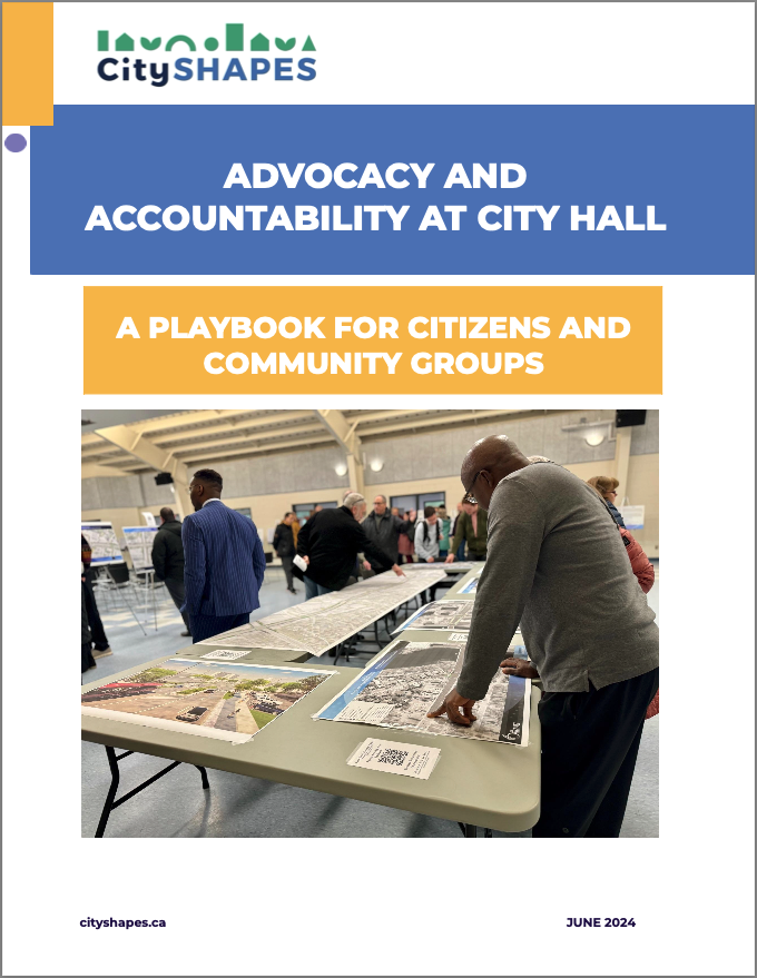 Having an impact on your local government begins with our guide, Advocacy and Accountability at City Hall: a Playbook for Citizens and Community Groups.
